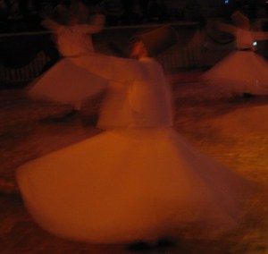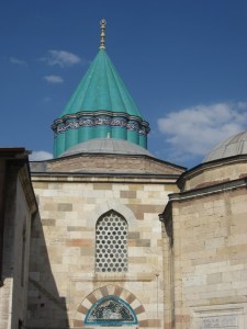 De Goreme acabamos indo para Konya, antiga capital dos turcos Seljuks, uma cidade grande, moderna, mas com muita tradição, uma bela arquitetura e um certo misticismo. Muitas mesquitas, e um museu onde viviam os Dervishes. Existe uma grande exposição de livros do Corão, alem de uma caixa onde supostamente esta a barba do profeta Maomé. Ao lado o mausoléu do grande poeta Rumi. Como era um sábado, tinha uma apresentação no centro cultural, e pude ver também a musica, tradição, e forma de meditação – que parece um transe – com eles girando sem parar. Conhecemos um casal de americanos que estavam na mesma pousada que nos na Capadócia, e eles estão dando a sua segunda volta ao mundo, agora já perto dos 60 anos de idade. A primeira foi antes do filho nascer e a segunda com o filho já bem crescido. Bastante inspirador, pois achávamos que essa nossa viagem seria a ultima, mas depois de ver casais com filhos pequenos viajando por meses e agora os sessentões, entendemos que não precisamos parar por aqui. Muito legal conhecer esta cidade, que mesmo com seus modernos trens elétricos, ainda preserva a tradição e a cultura. Falar em cultura, fui experimentar um dos pratos típicos locais, que e uma especie de pizza com carne moída. Digamos que uma esfirra engordurada em formato de pizza. Mais ou menos. Mas a comida da Turquia em geral tem nos agradado bastante.