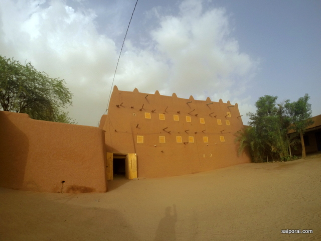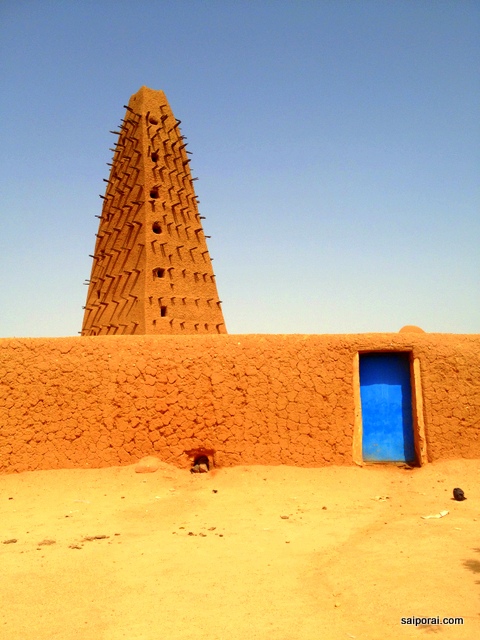 Alguns vendedores insistiam para eu entrar em suas lojas. Belos artesanatos e a famosa “Cruz de Agadez” eram os primeiros itens a serem oferecidos. Um grupo de mulheres entravam cantando em frente ao Palácio do Sultão. Parecia que teria uma grande festa. O Sultão de Agadez é uma figura importante, como que um governo paralelo. Mostra um pouco da importância que a cidade já exerceu (1449 já era um sultanato), quando estava numa das principais rotas de conexão entre a África e a Europa. Rivalizava com Timbuktu, e sua imponência ainda pode ser observada na arquitetura entre as ruas empoeiradas.