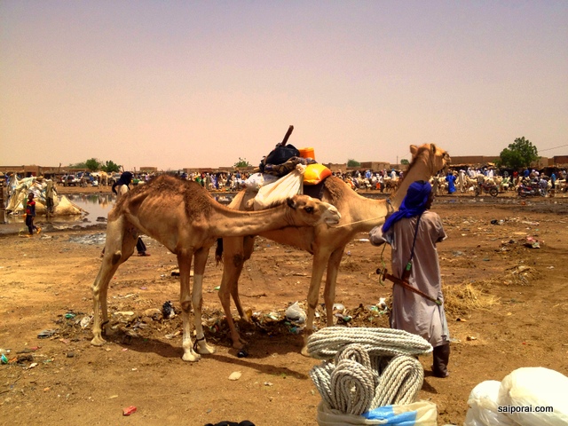 Um jovem dromedário lutava com seus donos para não ser carregado, mas não teve jeito, torceram seu rabo, seguraram sua mandíbula e patas e derrubaram. Nos arredores era fácil de ver dromedários sendo puxados por tuaregues com vestimentas tipicas e espadas. Uma verdadeira viagem no tempo!