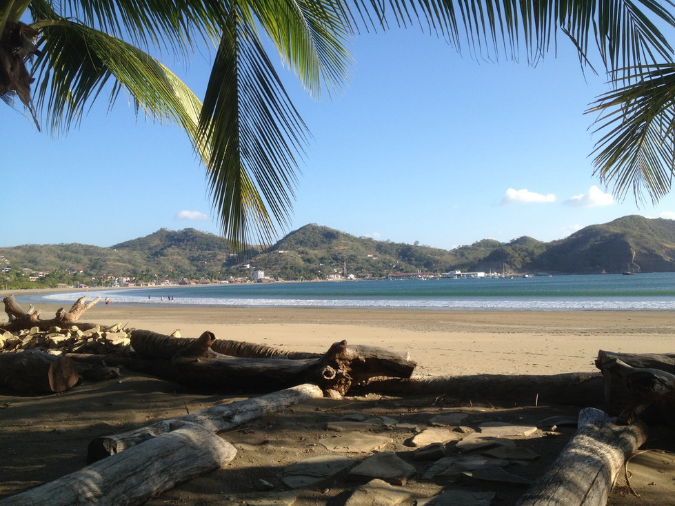 Mais quarenta minutos de viagem, agora num confortável ônibus com filme e musica, e nos deixaram na entrada da praia de El Tunco, logo após o porto de La Liberdad. Treze horas de viagem para percorrer menos de 500 km. El Tunco é uma praia famosa pelo surf, cheia de pousadas, portanto não foi difícil achar um lugar bom e barato para ficar. Centro pequeno, com meia duzia de restaurantes e outra meia dúzia de lojinhas. Como é voltado para o turista, os preços eram um pouco acima do que estávamos pagando na viagem, mas nada exorbitante. Apesar de ser considerado um destino onde rolam algumas noitadas, até que não estava muito movimentado fora do final de semana. Mas no sábado a balada era pesada, com muito ragaton e pessoal se esfregando estilo funk. Apesar de ser carnaval, não entramos no embalo. Estávamos em outro ritmo então relaxamos por uns dias, curtindo o final da viagem. Acordava cedo todo dia, para surfar quando o mar ainda não estava lotado. Encontramos o Igor, brasileiro que também estava viajando pela America Central, pela oitava vez, apesar de ter feito um trajeto totalmente diferente do nosso. Ele estava com outra brasileira, Ana, que conheceu em Honduras. Curtimos um clima de praia, comida e cervejinha. Férias da viagem, antes de irmos para San Salvador.