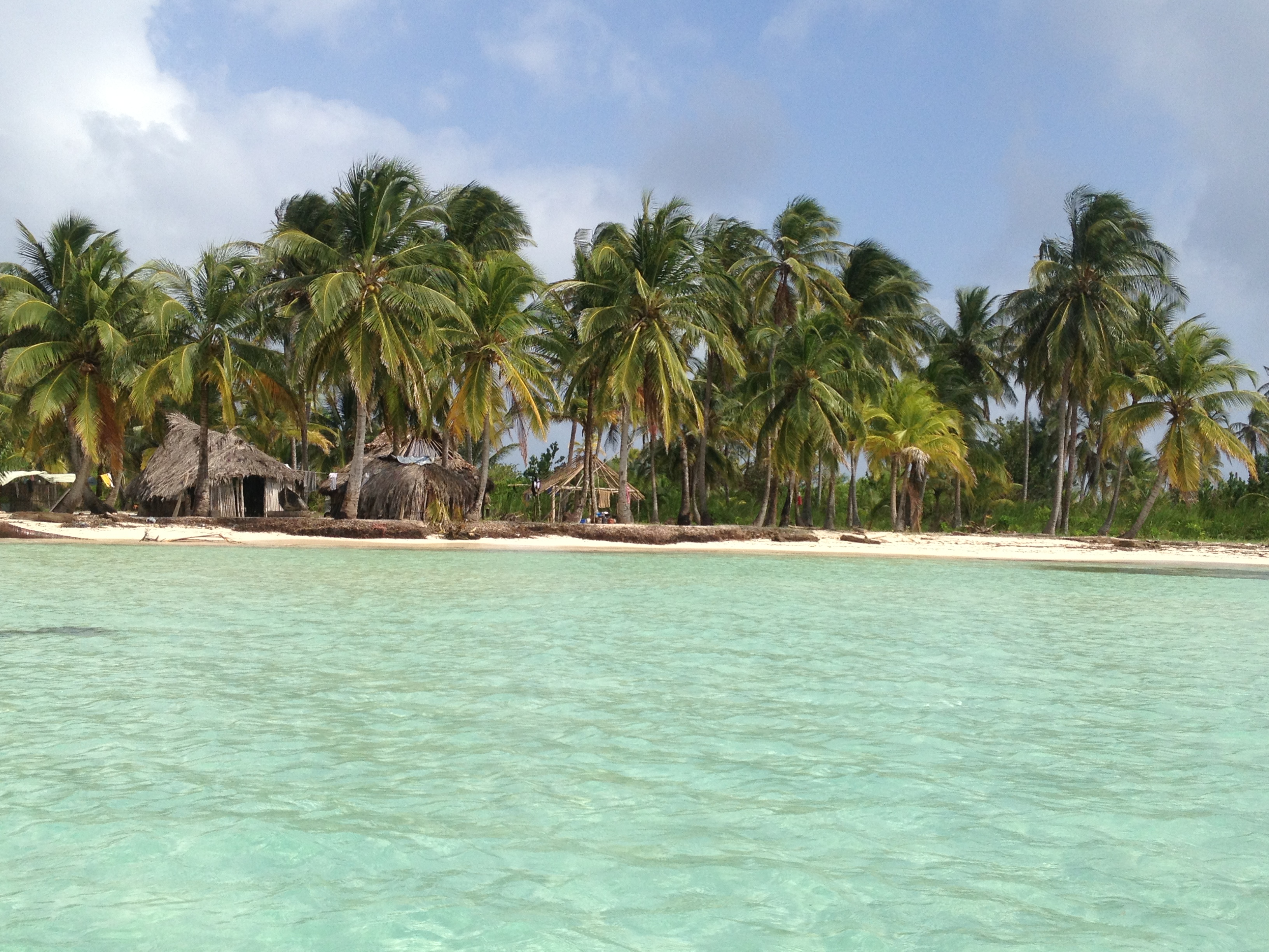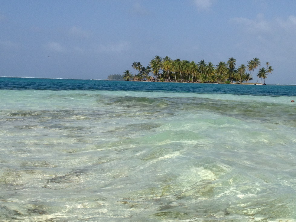 Nós tínhamos arranjado tudo para ficar na ilha Diablo. Apenas uma parada para abastecer em uma ilha-vila e seguimos viagem pelas águas transparentes do caribe. Ficamos muito contentes com nossa ilha, muito bonita e calma. O problema é que era uma das com menos infraestrutura, a Bibi chegou a pensar que não ficaríamos tanto tempo quanto queríamos, mas logo entrou no esquema. Se inicialmente não acertar direto com o “dono”da ilha, uma dica é de falar que vai ficar somente um ou dois dias, depois estender a sua estada. Nós fizemos isto e conseguimos o preço de camping para ficar em uma cabana que tinha até cama, um luxo! hehe “Pousada” literalmente pé na areia, já que não tem piso, desce da cama pisando na areia. Fica a poucos metros do mar azul cristalino, com uma rede na frente.