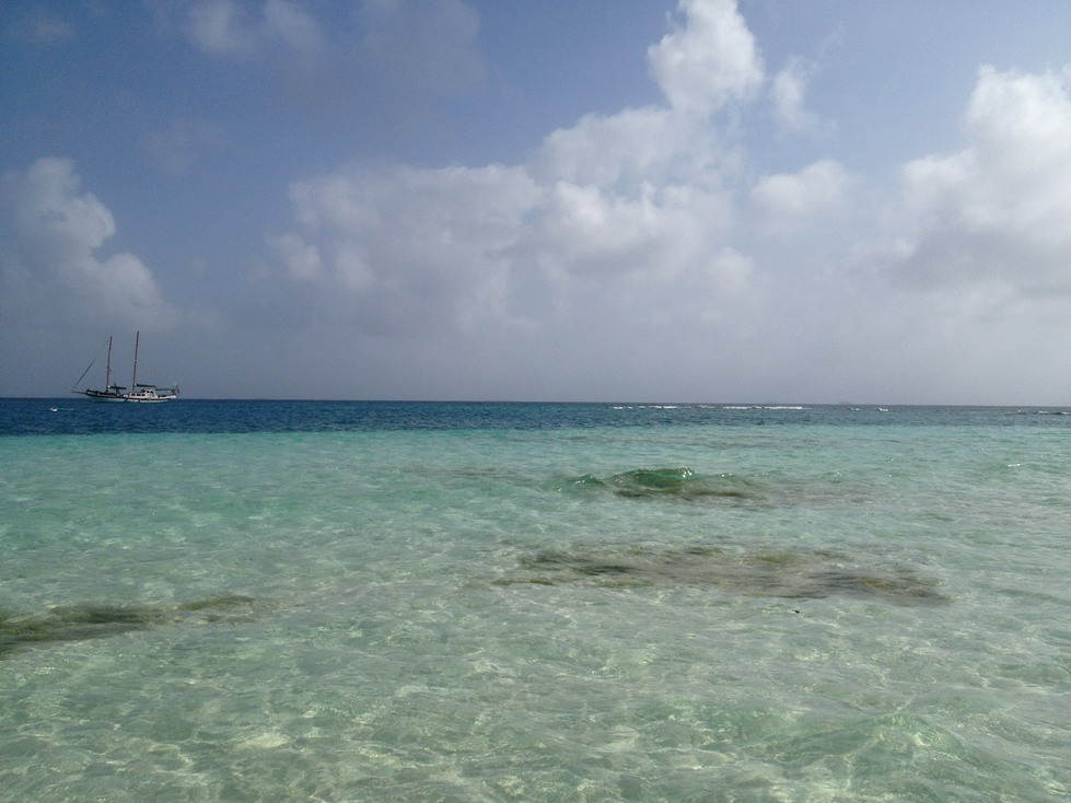 A ilha ao lado, numa distancia onde era possível nadar, tinha um barco afundado, somente com a proa para for a. No caminho também tem uns corais com seus devidos peixinhos. Na ilha tinham poucas pessoas, e logo ficamos muito amigos, principalmente dos hermanos argentinos, muito gente boa! Altos bate papo no final de tarde. Pessoas vinham e iam, e nós fomos ficando. Um dia chegou um barco cheio de gente, e a ilha ficou lotada. Não foi só o clima que mudou, mas a qualidade da comida. Para quem tinha comido lagosta, ficar só no peixinho foi triste. rs