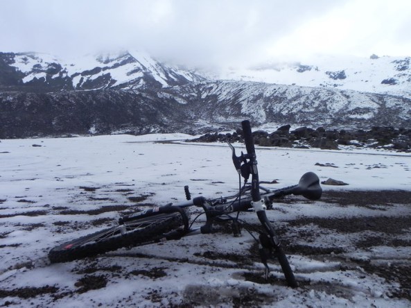 Riobamba não tem grandes atrativos, mas achei uma cidade bem simpática. Consegui um hotelzinho simples por 5 USD e, fui logo atrás do meu objetivo: Chimborazo, o maior vulcão do Equador, anunciado por aqui como o ponto mais perto do sol, já que a terra é elíptica. Meu objetivo não era escalar, e sim descer o vulcão, de bicicleta! Arranjei uma agência e no dia seguinte me levaram até o primeiro acampamento. Ainda caminhei até o segundo acampamento, a 5000 metros de altitude onde o tempo estava encoberto e logo começou a nevar. Logo percebi que seria “divertido”! Se não estava um dia bonito, com ceu aberto, pelo menos que tivesse emoção. Foi quase uma tarde inteira descendo de bicicleta, onde entendi o conceito de “mountain bike”. No inicio estava bem conservador, só observando as vicunhas e montanhas, mas depois não tem como não dar seus saltos. Já na parte mais baixa do vulcão, iniciam estradas rurais, por algumas das regiões mais indígenas do país. Muito legal! Encontrei três franceses que fizeram parte da descida comigo. Já no final do dia, o carro de apoio veio oferecer para voltarmos, pois faltavam só 5 km, e estava escurecendo. Eu insisti para pedalar mais, e paguei caro por isto. Muita chuva! Detalhe que só viajo com um tenis, então teria que achar alguma alternativa ou comprar um novo no dia seguinte, pois estava encharcado!