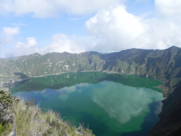 O lugar é uma pequena vila, com algumas pousadas, mas praticamente nenhuma infraestrutura. A poucos metros dali fica uma das mais impressionantes atrações do Equador, a Lagoa Quilotoa, um vulcão extinto com um grande lago dentro. Lugar fantástico!! Algumas pessoas pegam um taxi de Latacunga, vem ver a lagoa e voltam, mas desta maneira perdem o grande encanto do lugar. É possível descer até o lago, tomar banho, ou dar a volta completa na cratera, que demora de 4 a 5 horas. Na pousada (8 usd incluindo 3 refeições) reencontrei o Pierre, além de fazer outras amizades, Nir, Janna, Nayra, que se tornariam ótimas companhia de viagem. Durante o jantar diversos assuntos, mas eu fui massacrado ao defender muçulmanos e falar da tranqüilidade que foi viajar em terras islâmicas. Bem, era um francês ateu, um israelense, uma libanesa cristã, uma espanhola e duas americanas. O ponto de vista deles era super unilateral, e sem conhecimento de causa (somente informação que vem na tv). Dias depois conheci um Italiano que viajava um monte, e deu risada quando eu contei da discussão. Ele disse que era perda de tempo falar com ocidentais, por mais legais que fossem, a respeito deste assunto, caso eles mesmos não tivessem  tido a experiência. Me conformei um pouco mais, pois na hora da discussão, tremi de raiva, não por causa da ignorância, mas por não me deixarem argumentar.