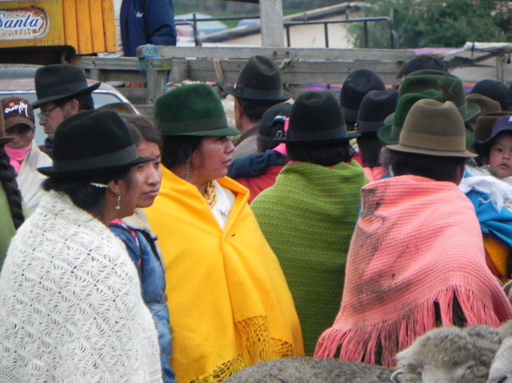 Para irmos até Saquisili tínhamos somente duas opções. O ônibus das 3 da manha, ou o caminhão de leite das 9. Como queríamos chegar para o mercado de animais, madrugamos mesmo. No teto do ônibus já tinham ovelhas e porcos. O marcado inicia cedo, e as pessoas vem de todos os cantos para vender e comprar seus animais. Chegamos na área dos porcos, onde tinha um barulho ensurdecedor de porcos gigantescos gritando. A área das vacas e ovelhas estava mais calma, mas o que nos interessava mesmo eram as Lhamas. Sem contar nas pessoas, com seus costumes e trajes típicos.