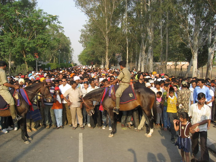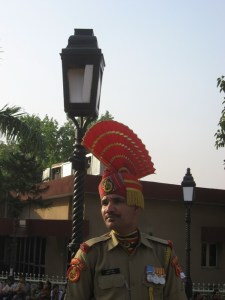Attari, a fronteira com o Paquistão não fica muito longe dali, e fui dar uma olhada na cerimonia de recolhimento da bandeira no final da tarde. E algo bem turístico, um show montado, mas muito divertido. Na verdade e para turista indiano, que e a maioria esmagadora, não para estrangeiros. Como estamos na Índia, filas e milhares de pessoas se aproximavam das arquibancadas perto da divisa dos países (sim arquibancadas!!!). La inicia uma cerimonia, com gritos, danças, provocações com bandeiras e marchas dos enfeitados soldados. Tudo devidamente ensaiado acontecia da mesma forma do lado do Paquistão. Ironicamente uma grande rivalidade e ameaças de guerras, e transformada num show, rentável para ambos os lados. Sim, rentável financeiramente, pois existem lojas de suvenires onde se pode comprar camisetas, canecas, DVDs, etc. Todos com sorriso na cara, jovens dançando no maior estilo Bollywood no meio da rua. Bizarro!!! Apesar de um pouco longo, foi muito divertido. Triste foi ver aquela que e a unica forma de passar de um pais para o outro ao longo da enorme fronteira, e não ir para la. Eu realmente queria fazer Paquistão e Irã, mas fica para uma próxima vez…