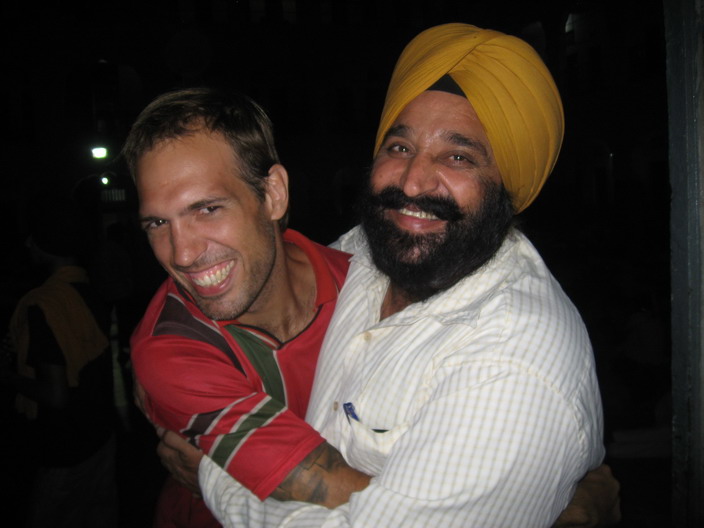 Era a terceira vez que viajava pela Índia, já tinha passado alguns meses no país, mas ao chegar na parte velha de Amritsar, me perguntei: Porque mesmo que eu gostava da Índia? E isto que o estado de Punjab era um dos que eu mais gostava, devido a deliciosa comida e hospitalidade do povo. Mas no primeiro momento o que sobressaia era um barulho ensurdecedor de buzinas, lugar cheio de gente e imundo. Não parecia ser a mesma Amristar que eu estive no ano passado. E não era, pois da outra vez, fiquei todo o tempo dentro do templo, inclusive hospedagem e refeiçoes  Passamos uma noite infernal com muito barulho, e no dia seguinte nos mudamos para um outro lugar mais calmo. Paz mesmo só conseguimos no Golden Temple. O Jony e Marco adoraram, foi um bom lugar para fechar a viagem deles. Era a primeira vez da Bibi ali também  e fomos todos comer no movimentado refeitório do templo. Bandeijão de qualidade, só o Jony que não encarou pois estava meio mal do estomago.