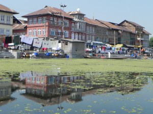 A cidade velha de Srinagar é uma delas. Tranquilidade por causa da ausência do exercito, não pela falta de bagunça  O exercito não vai muito lá, pois os locais se reúnem e jogam pedras neles, e sempre da confusão  muitas vezes tomando grandes dimensões  As ruas são muito estreitas, e as casas possuem uma arquitetura única. Muitas delas com sacadas em madeira toda trabalhada. As mesquitas também tem um estilo próprio  sem minaretes, e com o telhado lembrando estupas budistas. Fomos diversos dias nos perder pelas ruas. As grandes atracões  não tem endereço certo, elas são as cenas do cotidiano. Lojas de especiarias, carneiros sendo pendurados e carneados no meio da rua e por ai vai. Em volta da mesquita principal aquela sensação de que o tempo parou. Diversas pontes cortam a cidade e dão uma vista fantástica para as construções.