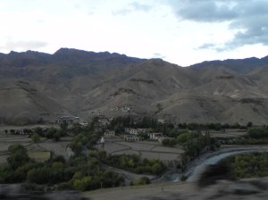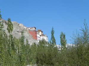 Sabíamos que a viagem seria longa, mas foi ainda mais demorada que o esperado. No total acho que passou de 17 horas viajando pelos Himalaias, passando pelas milhares de curvas, no topo de altíssimos passes com vistas espetaculares. Paramos em Kargil, cidade bem próxima a linha de controle, onde os paquistaneses invadiram a pouco tempo, mostrando que os milhares e milhares de soldados indianos talvez não estejam tao preparados quanto pensam. Na estrada vários acampamentos do exercito, muitos deles fazendo treinamentos de escalada nas montanhas. Saindo da região da caxemira entramos em Ladak. A paisagem ia ficando mais desértica  pois estávamos cada vez mais altos. As bandeirinhas de orações budistas passaram a aparecer por tudo que ‘e lado, e as vilas estavam cheias de estupas e monges. Paramos em algumas delas, e gostaríamos de ter podido ficar mais tempo por ali. Chegamos já bem tarde em Leh, e por acaso acaso acabamos ficando numa pousada super bacana. Tinha um jardim todo florido com vista para as montanhas de um lado, e para monastérios e fortes do outro.