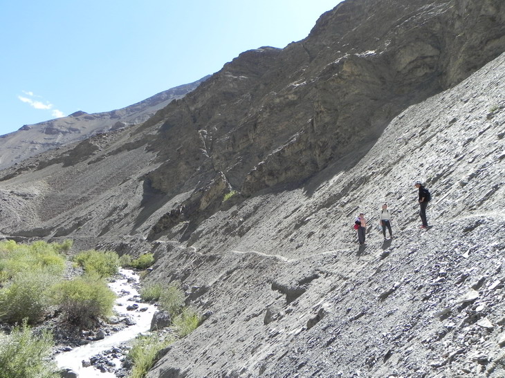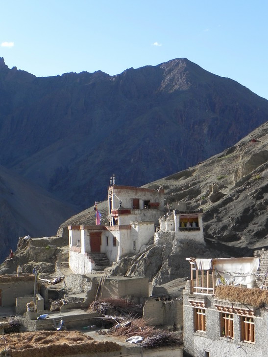 Partimos para as montanhas, caminhando entre vales e bonitas formações rochosas, atravessando rios ate a vila de Rumbak. Uma vila de não mais que 12 casas e um monastério  Muitas plantações  yaques, e um grande espirito comunitário  Região muito bonita, um vale realmente especial. Passamos a noite numa das casas, fomos super bem recebidos. Aproveitamos um monte o lugar, mas na hora de seguir viagem fui voto vencido. Seriam mais 8 horas de caminhada, desta vez passando a 5 mil metros de caminhada. Acabamos voltando pelo mesmo caminho, e encontramos um casal de espanhóis viajando com seu filho de 3 anos. Iam fazer um treking de 25 dias!! Já era o oitavo pais que o moleque conhecia, e sempre ia caminhando, com seu óculos espelhado e todo animado. Pra quem acha que não da para viajar com criança ta ai: