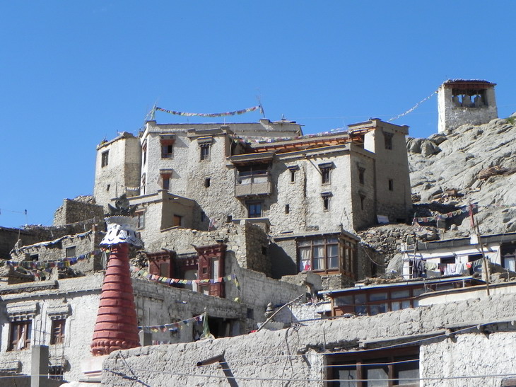 Leh fica a mais de 3500 metros de altitude. Confesso que devido a dificuldade para chegar, esperava um lugar mais intocado. Sabia da fama do lugar entre os viajantes, mas não esperava tantas lojas uma perto da outra e restaurantes vendendo pizza e comida ocidental. No meio de tudo isto muitas internet cafés. Por outro lado, a energia elétrica faltou com muita frequência  mostrando que ainda existe um certo isolamento.