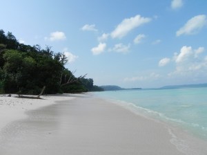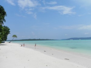 Passamos pelos comboios, vimos mais jawaras e aquele visual fantástico de floresta tropical, que me lembrava o interior da Indonésia  Chegamos a Port Blair e conseguimos conectar com o ultimo ferry que ia para Havlock. Duas horas e meia depois estávamos la. A’i as coisas foram mais fáceis  Isto não quer dizer que existe uma super infra-estrutura, existem dezenas de “resorts” um ao lado do outro, mas acho que 80% são cabanas bem simples, feitas de bambu.