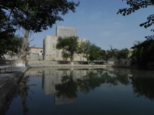 Nossa primeira parada no Uzbequistão foi na antiga cidade de Bukara. Ficamos numa guest house bem legal, aqui existem diversas guest houses em casarões típicos, tornando o lugar ainda mais característico  Ficamos no bairro judeu, onde estão a maioria destes casarões  Estávamos a poucos metros de uma sinagoga, e era muito interessante ter judeu Uzbeks andando para cima e para baixo. O numero de judeus já foi bem maior, e e muito bacana ver eles tao integrados na sociedade, mesmo o pais sendo de maioria muçulmana. Alias, a não tanto tempo atras, eles usavam ate uma mesquita como sinagoga, acreditam? Os monumentos mais impressionantes não ficavam muito longe de onde estávamos  e nos dividíamos entre os passeios, que eram no inicio da manha e final da tarde já que o calor era absurdo, e muita sombra e comida ao lado do lago Lyabi Hauz, cercado por madrassas. Nos sentimos muito bem em Bukara, parecia que estávamos num pequeno bairro, já que quase tudo dava para ser feito a pé.