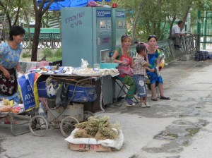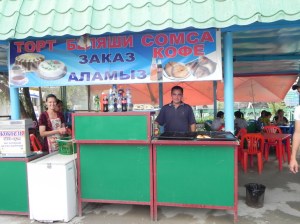 A passagem deu certo, e devolveram ate o troco. Nos estávamos morrendo de medo de corrupção  pois um casal de israelenses tinham nos assustado, mas tudo se mostrou ser mais simples do que parecia. Desisti de ir deserto a dentro ate o antigo Mar Aral. Eu queria ver aqueles navios encalhados na areia, sem nada de água, onde ocorreu uma das maiores catástrofes causadas pelo homem. Mas depois de ver tanta coisa perfeitinha, e descobrir que ate os navios eles alinharam e organizaram, desisti da ideia. Arranjei um restaurante bem gostoso, e a Bibi ficou surpresa. O problema e que não estávamos muito bem de estomago, e não podíamos comer de tudo (depois de quase dois anos de viagem, tive minha primeira diarreia).
