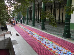 Interessante como a mídia reage a estes novos protestos que aconteceram poucos dias antes de chegarmos. A maioria das agencia de noticias colocava os Uygurs como extremistas islâmicos  treinados no Paquistão e Afeganistão  Não estou defendendo a forma que estao protestando, pois houveram mortes e queimaram estabelecimentos, mas sua causa ‘e nobre. Não e fácil conversar com um vendedor na rua e ver seus olhos se encherem de lagrimas ao falar sobre o que sua vida se transformou depois da ocupação chinesa. A China esta colonizando e fazendo as mesmas coisas que os países europeus fizeram nos últimos seculos. Os países ocidentais dizem “amem” para a China por diversos motivos. Pela potencia econômica que e, que empresta dinheiro para o pais mais rico do mundo quando este entra em crise, e para combater o Islamismo, como se este fosse inimigo do ocidente. Vendo tanto exercito, detectores de metal sendo colocados nas portas da mesquita, e áreas sendo isoladas, claro que tentamos encontrar o maior numero de informações  Da vontade de rir ao ver o que esta acontecendo e o que a mídia fala. Me surpreendi ao ver uma matéria no Brasil não tendenciosa como as outras. (Clique aqui)
