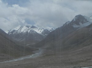 Chegando na imigração chinesa novamente problemas com meu passaporte velho (sem chipe e foto 5×7 tosca), e para terminar, queriam olhar minhas fotos na maquina e por fim abriram meu computador. Ainda não sei se acharam que eu era jornalista ou terrorista. Ao sair da fronteira, negociamos um carro que levava trocentos galoes e mercadorias. Ao comprar agua agradeci em mandarim, para a revolta (com toda a razão !) do dono do estabelecimento. Eu sabia da questão dos Uygurs x Chineses, mas como arrisquei uns comprimentos em mandarim na imigração  acabei me confundindo. A estrada, para nossa surpresa, nao era nem um pouco boa. Para ajudar o nosso motorista começou a dar aquelas pescadas. Tentei puxar papo para ele não dormir, mas ele ano aguentou, encostou a caminhonete e deitou na direção  Eu me ofereci para dirigir e ele aceitou na hora, indo para o banco traseiro roncar. Dirigi não mais de uma hora e o pneu furou. Depois de trocarmos o pneu, o motorista voltou para o comando. A estrada era longa, e apesar de bonita, nem se comparava com a etapa final do Quirguistão  Os últimos quilômetros foram beem cansativos, e depois de algumas paradas, chegamos a uma autopista, e logo a ex- pequena cidade Kashgar.