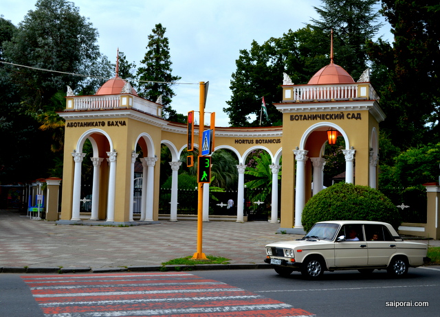 Entramos em Sukhumi, e depois de deixar um passageiro, pedimos para nos levar direto na imigração. Tínhamos uma autorização de entrada, com datas específicas inclusive, mas precisa ir até o Ministério de Relações Estrangeiras para tirar o visto propriamente dito. Quando o motorista entendeu onde queríamos ir, exitou um pouco. Fez uns telefonemas, perguntou na rua e nos levou em um prédio do governo. Gesticulava e dizia “Niet, Niet (Não)”. Depois fomos saber que era feriado regional. Estávamos numa região bem central e decidimos ir caminhando mesmo. Passamos por parques e praças, muito arborizados mas sem uma viva alma. Logo chegamos ao State Drama Theatre e na parte principal do calçadão.