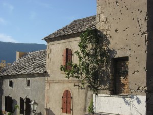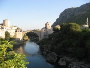 Nosso próximo destino ficava na parte Herzegovina do pais. Fomos de trem, pelas belas e muito verdes montanhas. O trem e cedo, mas vale o esfôrço de sair da cama ao amanhecer. São curvas e tuneis intermináveis  numa super paisagem ate chegar em Mostar. A cidade ficou famosa por uma bonita ponte, que foi destruída nos conflitos, dividindo a cidade entre Bósnios-Croatas e Bósnios-Muçulmanos (eles lutaram lado a lado no inicio da guerra contra os Bósnios-Sérvios, mas depois acabaram guerreando entre si). Cada um para um lado da cidade. Se por acaso estivesse do lado errado, azar o teu, ficaria assim por anos, ate o conflito acabar. A cidade foi posta ao chão, mas assim como a ponte, foi reconstruída. O turismo (a proximidade com a Croácia facilita) tem trazido dinheiro para a região, mas o assunto da guerra ainda e um tabu. Novamente obtivemos poucas respostas para nossas perguntas.