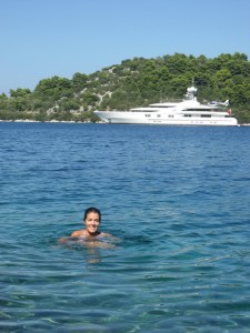 Ficamos muito contentes com a nossa ilha. Era bem o que buscávamos. Alugamos uma scooter e percorremos as poucas estradas que existem lá. Bahias e lagoas azuis, muitas delas desertas. O que é a paisagem da Croácia…