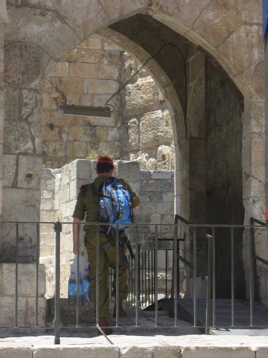 Pegamos um táxi para a fronteira com Israel/Palestina com aquela apreensão, e a certeza de que se tudo desse certo, teríamos que no minimo ficar algumas horas ali. Acabamos tendo que esperar mais tempo do lado da Jordânia que em Israel/Palestina. Chegamos junto com dezenas de palestinos, e fomos nos posicionando para despachar a bagagem que seria vistoriada, passamos por raios-x e tivemos o passaporte verificado algumas vezes. Quando toda a previsão parecia se concretizar pegamos uma fila de não mais que 3, 4 pessoas e nos apresentamos na imigração. Foi rapidíssimo! Não se importaram quando respondi que não tinha hotel reservado nem passagem de volta. Comentei que iriamos ate a Turquia passando pela Síria (a Bibi ainda lembrou do Líbano, sem causar nem uma mudança no tratamento) e a simpaticíssima agente da imigração ofereceu para carimbar a entrada num papel separado. Eu e a Bibi só nos olhamos tipo: “ta bom, tão fácil assim!?!” Dali até Jerusalém foi rapidinho, passando pelas auto-estradas que cruzam o território da Cisjordânia (mas que palestinos não podem usar).