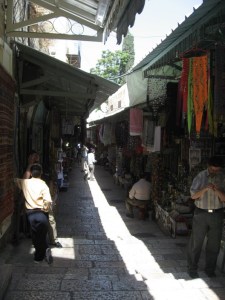Teve um dia que fomos tomar café da manha cedo e conhecemos um novaiorquino que esta fazendo um filme independente. Iniciamos assunto de religiões (ele e de origem judia, mas hoje ateu), e logo surgiu um alemão louco. Não ele não era louco, era doido varrido! Aplicava suas teses matemáticas para explicar tudo, mas tinha um bom conhecimento geral. Passamos por diversos tópicos, mas quando o assunto se voltou para família, o choro do novaiorquino frustrado foi grande. Sei que quando fomos ver já eram umas três e meia da tarde!!! Como sabíamos que iriamos voltar para Jerusalém, fomos bem com calma, experienciando o local. Claro que fomos na igreja do Santo Sepulcro, no muro das lamentações e outros pontos famosos, mas gastamos muito tempo andando para cima e para baixo e conversando com o pessoal.