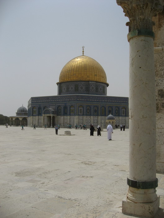Fomos também ao Monte Moria, onde andamos pela gigantesca plataforma de pedra onde já esteve erguido o templo de Salomão. Não consegui entrar na Mesquita do Domo da Rocha, que e só para muçulmanos. Depois que a mãe, Clau, Bibi e Mara saíram ainda tentei insistir com segurança, falar com pessoas, mas não teve jeito. Dentro da mesquita tem a rocha onde Abraão ia sacrificar seu filho Isaac, a pedido de Deus. Foi ali também que Maomé teria subido aos céus para encontrar com Alah em um sonho. Para os Judeus esta é a pedra fundamental do mundo, e tudo teria acontecido a partir dali.