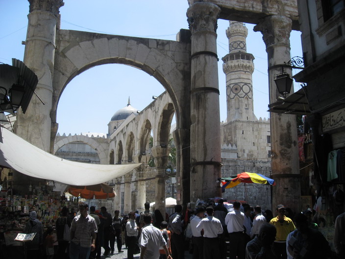 A mesquita Umayyad, fica não muito longe da entrada. Um antigo templo romano, que virou uma Basílica Bizantina, e depois da expulsão das cruzadas da região se transformou na mesquita. Muito bonita, com seu patio gigantesco, mosaicos e torres. As mulheres precisam colocar um roupão para se cobrirem e a Bibi teve que seguir as regras. Na sala de orações tem um lugar onde dizem estar a cabeça do São João Batista. Deve ser desde a época da Basílica Bizantina, se bem que ele é um profeta para o islamismo também. Em outra parte da mesquita estão os restos mortais de Husseim, importante muçulmano, neto do profeta Maomé. Um simpático iraniano matou nossa curiosidade. Por falar em heróis, existem tum ulos de alguns heróis das guerras contra as cruzadas por aqui, entre eles o Saladim.