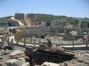 Bem, e um museu em céu aberto, na região onde houveram os combates entre os Israelenses e o Hezbollah. Uma forte propaganda mostrando como eles eram a resistência libanesa, e com menos armas e tecnologia conseguiram lutar. Mesmo estilo dos locais que visitamos no Vietnã. Existem bunkers cavados nas pedras, com longos tuneis e material exposto. Armas, tanques e foguetes da resistência alem de material capturado e destruído de Israel. Duas partes chamam muito atenção. Uma especie de furacão, com arcos e muitos tanques e armas de Israel destruídas, junto com capacetes de soldados israelenses, como se fosse um “obra de arte”, e o memorial para os mártires. E uma escadaria bem íngreme, alta, que se sobe com esforço e ao olhar em frente só se vê o céu. Chegando la em cima tem um jardim super florido com a homenagem aos mortos, e tudo cercado pelas belas montanhas. O esforço, sacrifício, céu e paraíso estão evidentes, mesmo não estando escrito em nenhum lugar. Pena não termos conseguido ver o filme que passa algumas vezes ao dia. Uma sala só dedicada a Israel não tinha tradução em Inglês. Acredito que a propaganda devia ser forte. Muitas famílias e turistas árabes, mas acho que logo os estrangeiros vão descobrir. Com certeza valeu a pena.