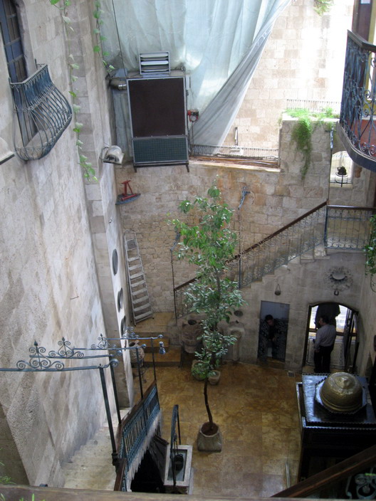 As opções de hotel baratos ficam muito próximas uma da outra, alem de perto da cidade velha, o que facilita muito. Ficamos num hotel que e um casarão antigo, com um patio interno super gostoso. Paredes com pinturas e decoração tipicas, poltronas e sofás com narguilés estrategicamente posicionados. Placas proibindo o consumo de álcool mostravam que a religião e levada a serio. As pequenas ruas ao redor faziam quase que uma barreira das avenidas, transito e poluição dos arredores. A região e cercada de cafés, sempre lotados de sírios. Com o inicio dos jogos da copa, o movimento que já era grande aumentou um monte. As centenas de bandeiras do Brasil espalhadas pela cidade tinham uma concorrência: bandeiras da Alemanha. Mesmo em menor numero, deu para ver que o apoio para eles não era pequeno.