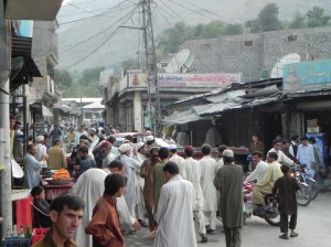 La fomos nos com uma escolta, na frente do ônibus Iniciei um papo com o motorista, que não estava gostando nada da situação A escolta não estava deixando ninguém entrar no ônibus o que daria um grande prejuízo Passamos por vilas, muitas delas cinematográficas Mulheres de burcas azuis, mercados movimentadíssimos e ate um engarrafamento de carros e animais misturados. Para meu desespero e vergonha, nossa escolta ate ligou a sirene. Agora sim poderíamos ser um alvo. O motorista virou para mim e disse. “Ali do outro lado moram muitos talibans”. Eu sabia que passaríamos bem perto da fronteira com o Afeganistão e concordei, falando: “Ah, do outro lado das montanhas já e o Afeganistão ” Ele disse: “ não, do outro lado do rio.” Era um rio pequeno, praticamente seco, cheio de pontes, e comecei a odiar ainda mais a sirene. O motorista comentou que todo mundo sabe, mas ninguém consegue controlar. Imaginei que deve ser uma situação parecida com o trafego na favelas do Brasil. Ele continuou com um discurso pro-taliban. Afirmou que a explosão da mesquita que ocorrera semanas antes nunca seria ação do Taliban, pois estes eram religiosos, e não atacariam uma mesquita, numa sexta-feira, em pleno mês sagrado do Ramadan. No passado ate guerras eram interrompidas neste período portanto mesmo os paquistaneses que adoram uma teoria da conspiração (tipo que o Bin Laden ja morreu ha quatro anos), mostra que tem alguma coisa estranha.