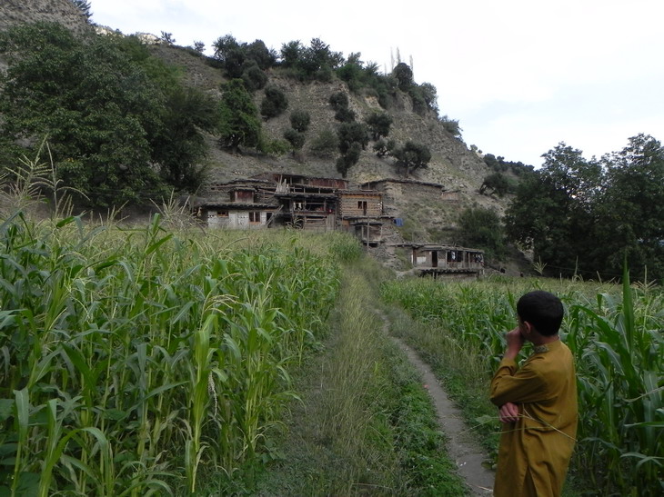 Os franceses tinham comentado que a escolta ficava grudada o tempo todo, mas não foi bem assim. Estavam todos descansando e aproveitei para sair com um dos filhos do casal. Andamos pela vila, conheci o improvisado campo de criket, mas não pudemos jogar por falta de bola. Fui na casa de um primo deles que tinha casado na noite anterior. Conheci algumas pessoas e descobri que e muito comum meninas casarem com 13 ou 14 anos. Andei praticamente a vila toda, passei pela parte muçulmana e fiz o controle de documentos sozinho. Depois de horas vi um dos soldados da nossa escolta num posto de controle no topo de uma montanha. Só abanei e ele tranquilamente abanou de volta. O lugar e único isolado do mundo, com características bem peculiares. O lugar era tao calmo, que horas pareciam dias. Novamente tínhamos uma varanda, com vista para a parte sul do vale, onde fazíamos nossas refeições.