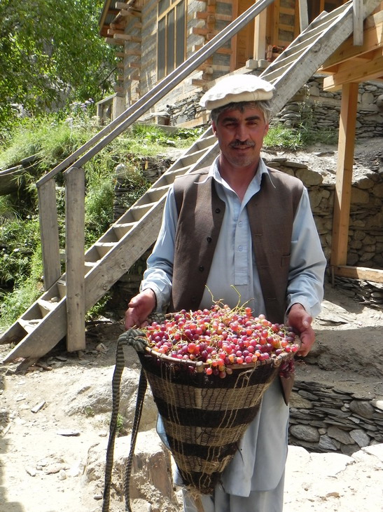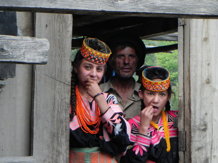Fomos no topo de uma das vilas, lugar sagrado para eles, onde tem uma ótima vista, inclusive do Afeganistão que fica a dois dias de caminhada. Crianças vieram interagir, e outras pessoas contar sobre a tradição do povo Kalash (que e politeísta . Sei que acabamos em outra casa, e quando vi já tinham colocado toda a roupa tradicional na Bibi. Nos ofereceram bastante vinho, bebida bem comum por aqui, o que e bem atípico para o Paquistão, onde e proibido bebida alcoólica.