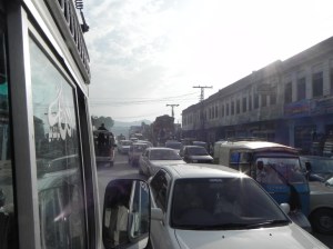 Mudávamos de distrito, e as escoltas mudavam. Iniciou uma serie de revezamentos, foram sete no total. Nos aproximávamos de uma caminhonete parada, nossa escolta parava, e a nova entrava na frente do ônibus Os passageiros estavam se divertindo, se achando super importantes. Um deles falou ao Joao e Marco que foi uma das viagens mais legais que ele já fez haha. Quando cruzamos cidades maiores, ganhamos algum tempo escapando do congestionamento. E assim seguimos adiantar horas d viagem, com paradas so para rezar, ja que comer não era possível por causa do jejum. Comíamos nossos mantimentos discretamente, e ninguém reclamou.