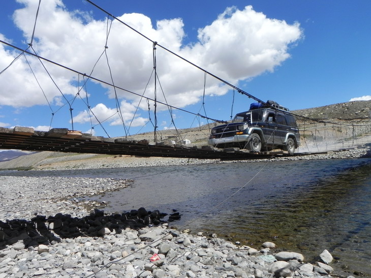 Andamos pelas ruas caóticas descolamos as barracas e sacos de dormir e estávamos prontos para partir. Nosso motorista colocou sua musica favorita, que repetia “Ali, Ali, Ali…” e cantamos empolgados. Mal sabíamos que ele ia repetir a musica umas 50 vezes, ate enjoarmos. Passamos por lago, mais postos de controle e subíamos sem parar. De repente, parecia ser mais um passe, aonde depois de uma subida viria uma descida, tudo mudou. Chegamos nos Deossais, estávamos a 4 mil metros de altitude, mas em vez de um descida, um planalto! Andamos por pequenas trilhas, atravessamos rios ate chegar em um rio com uma ponte suspensa. Era o lugar onde acamparíamos.